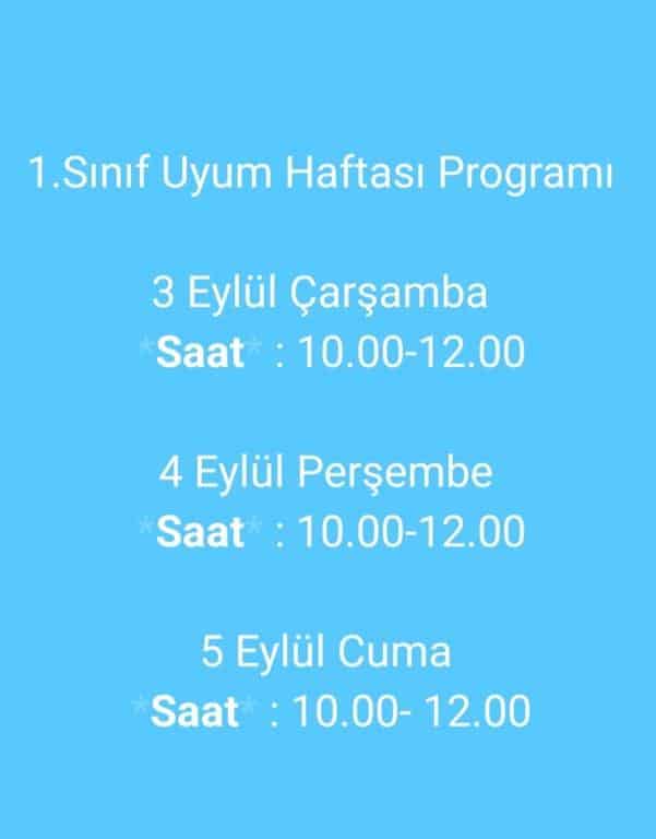1.Sınıfa yeni başlayacak öğrencilerimiz için okula uyum günleri ve saatleri belirtilen günlerde olacaktır.